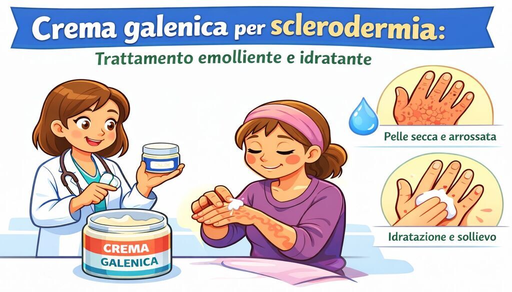 La sclerodermia è una patologia autoimmune che rende la pelle progressivamente più dura, secca e poco elastica, soprattutto a livello di mani, piedi e dita, dove possono comparire fissurazioni dolorose e ulcere digitali. In questo contesto una crema galenica ad alto potere emolliente e idratante rappresenta un supporto fondamentale alla terapia prescritta dallo specialista, perché aiuta a mantenere la cute più morbida, protetta e funzionale nelle attività di tutti i giorni. In farmacia è possibile allestire, previa prescrizione medica, una formulazione specifica per la sclerodermia, studiata per nutrire intensamente la pelle sclerotica e migliorare comfort ed elasticità cutanea nelle zone maggiormente esposte a freddo, microtraumi e sfregamenti. Proprio per questo motivo, una crema galenica per sclerodermia personalizzata rappresenta una soluzione terapeutica mirata.